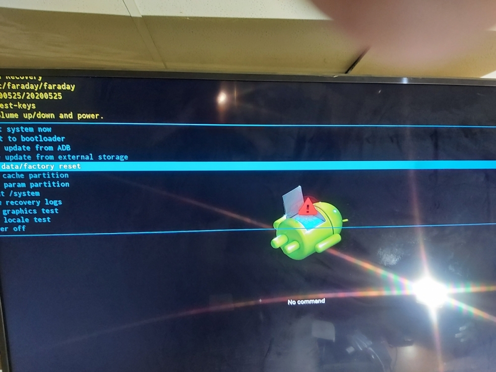 you didnt do it right You can feel the reset button if you push gently Once you know you have to hold the reset button in and power stick on Keep holding it until the screen appears ,you use volume buttons on remote to go up and down in menu -