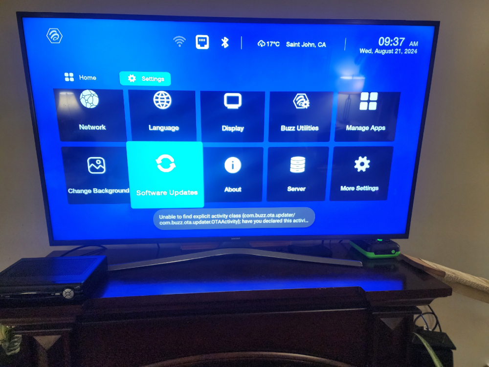 done a hard reset and i can't get the latest update, and it shows what is in the pics, second topic is if I go and change the launcher. I was told I have the buxzzv5 firmware now not the buzztv6 firmware