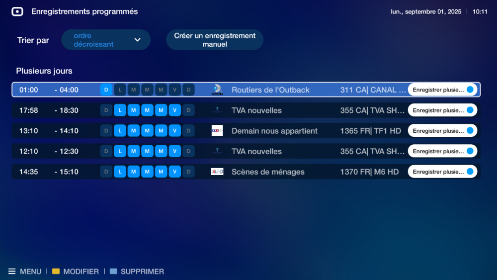 in buzztv 5 sheduler in french Thusday is "J" but actually is "M" is y ou have a future update please correct this because y have 3 "M" and 2 "D" and saturday is S not d actually: DLMMMVD Correct: DLMMJVS tanks-you